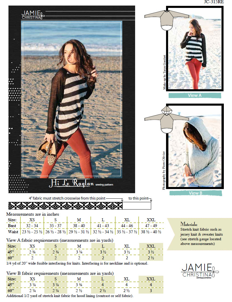 🧵 Downloadable pattern: Jamie Christina Hi Lo Raglan Downloadable Pattern JC315RE. ✂️ Perfect for DIY sewing projects.