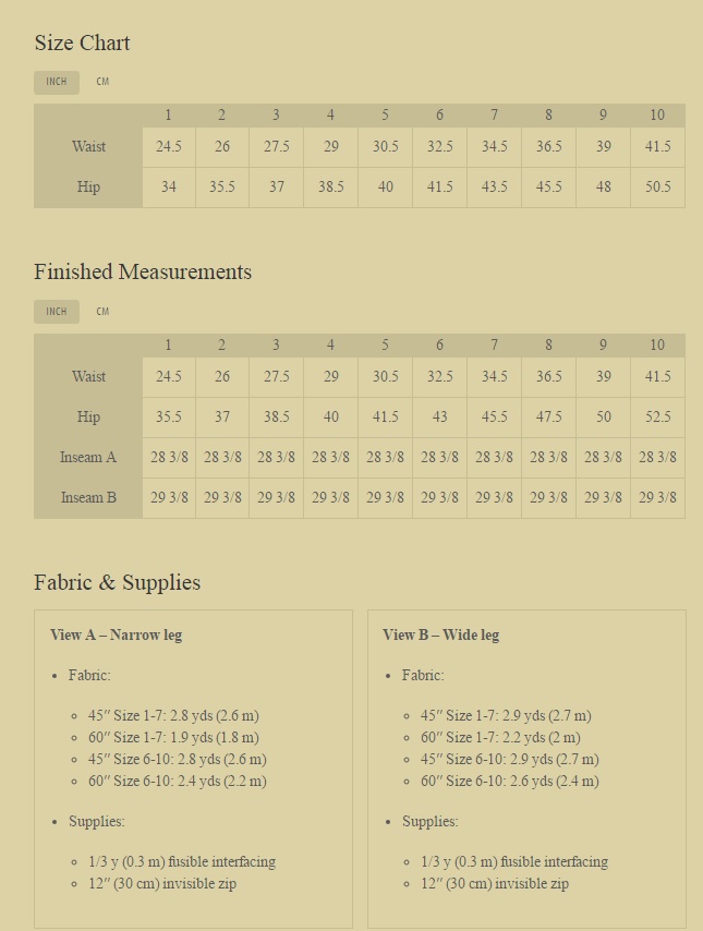 Specification: Paprika Patterns Amber Trousers Downloadable Pattern