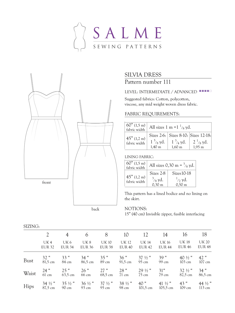 Specification: Salme Sewing Patterns Silvia Dress Downloadable Pattern 111