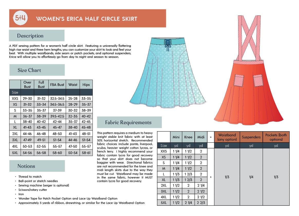 Спецификация: 5 out of 4 Patterns Erica Half Circle Skirt Downloadable Pattern