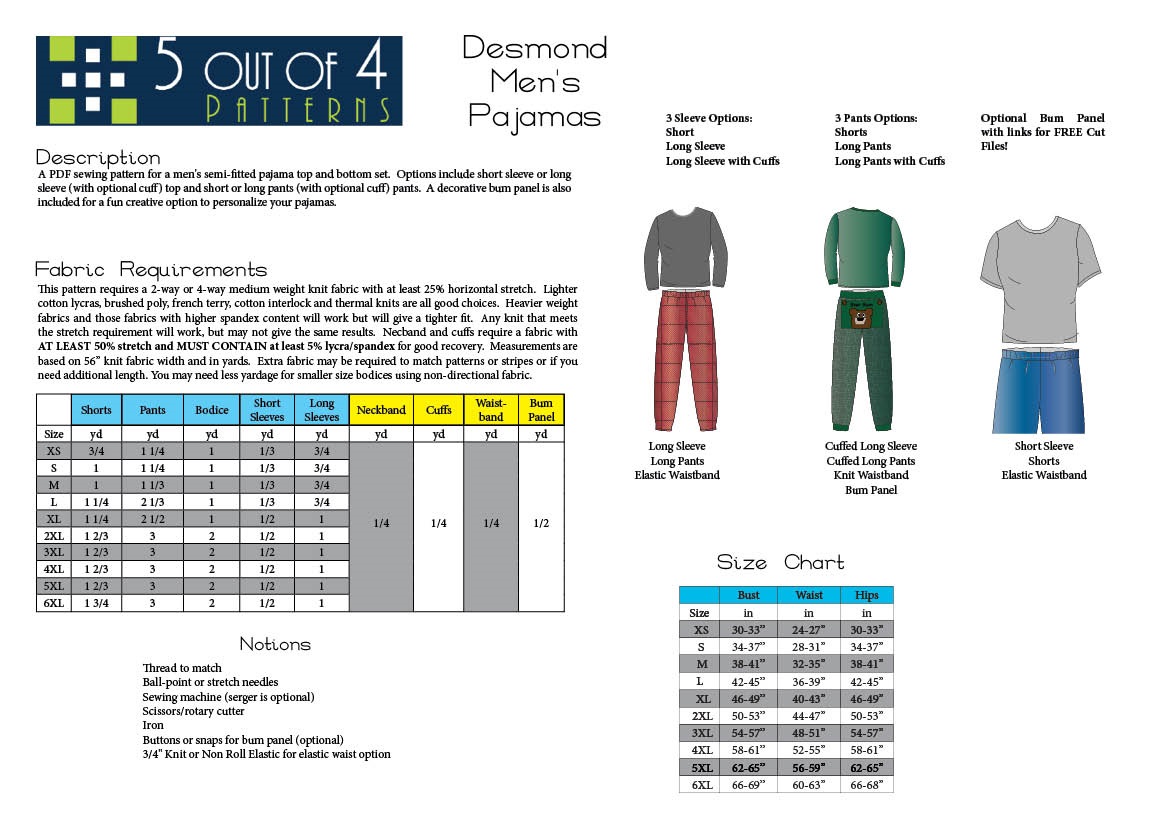 Specifikace: 5 out of 4 Patterns Desmond Pajama Set Downloadable Pattern