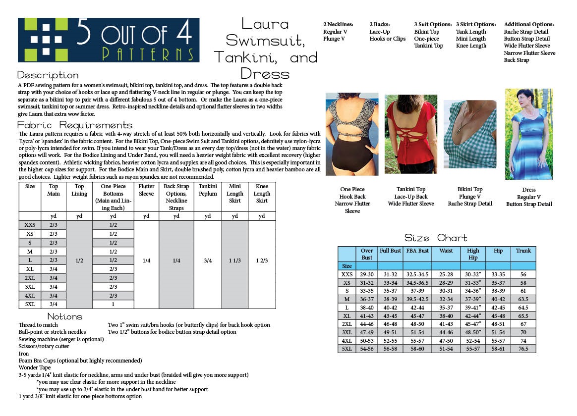 Specifikace: 5 out of 4 Patterns Laura Swimsuit, Tankini, and Dress Downloadable Pattern