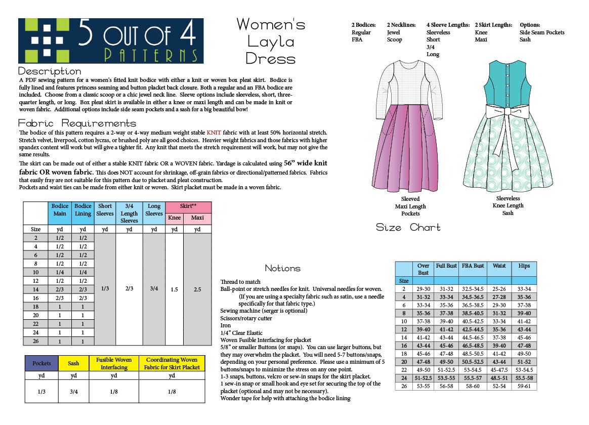 Specifikace: 5 out of 4 Patterns Layla Dress Downloadable Pattern