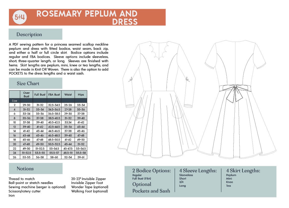Specifikace: 5 out of 4 Patterns Rosemary Peplum and Dress Downloadable Pattern