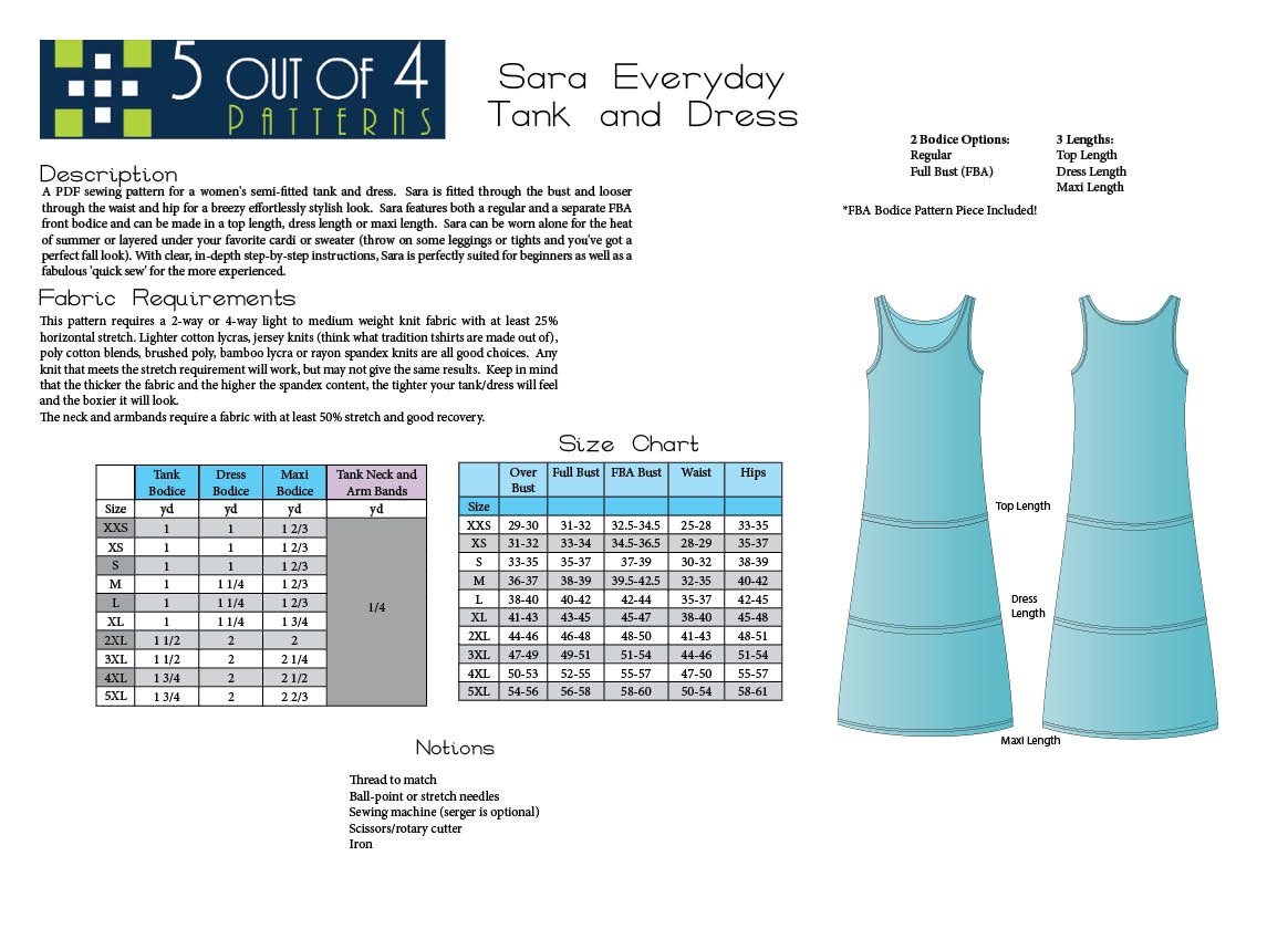 Specifikace: 5 out of 4 Patterns Sara Everyday Tank and Dress Downloadable Pattern
