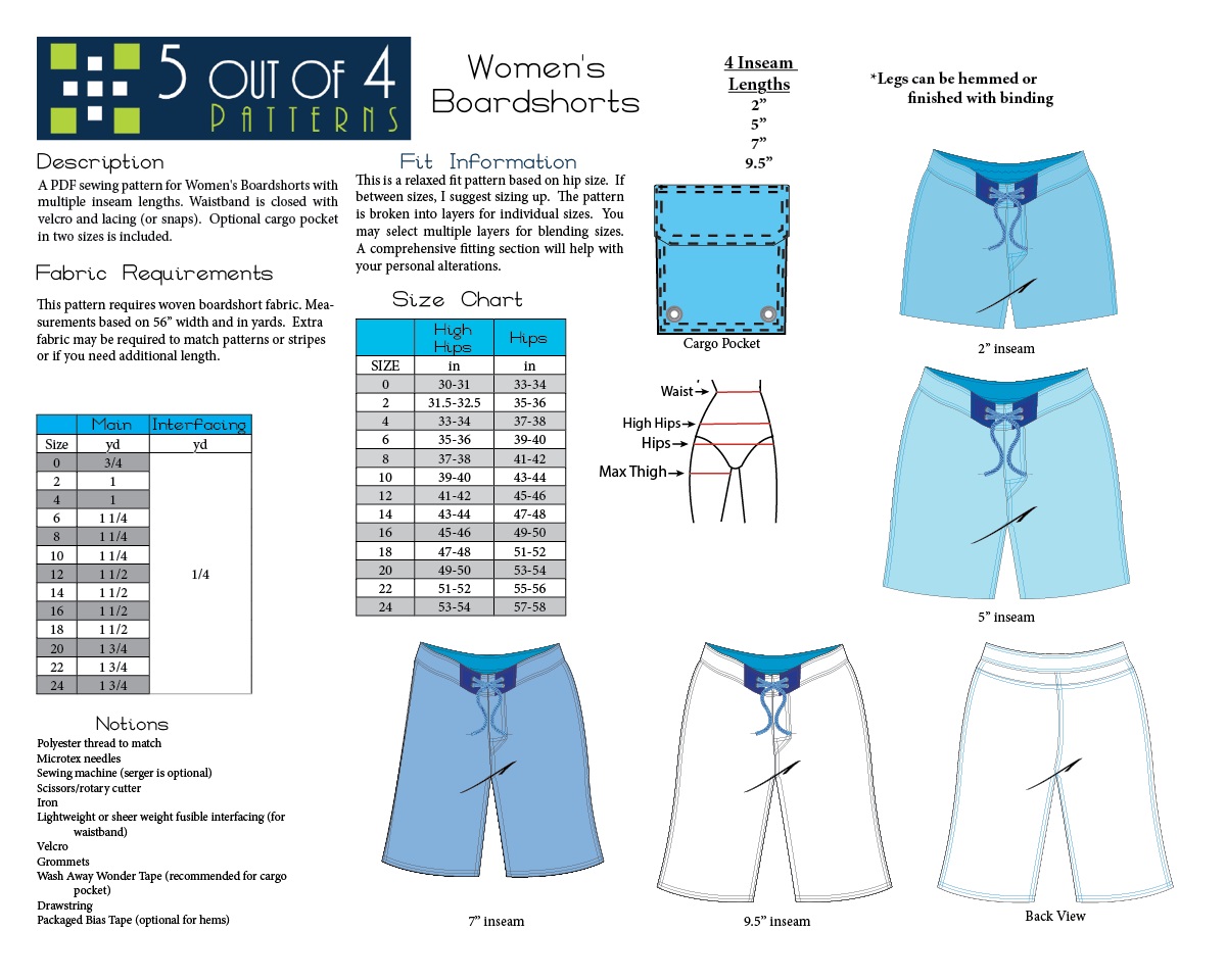 Specifikace: 5 out of 4 Patterns Women’s Boardshorts Downloadable Pattern Womens Boardshorts