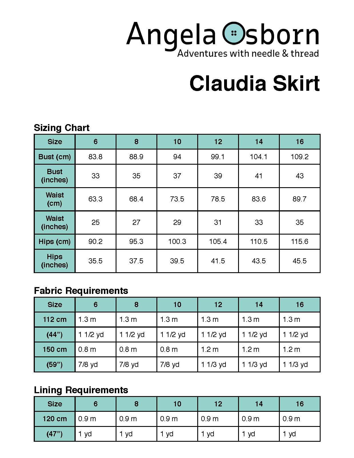 Angela Osborn Claudia Skirt Downloadable Pattern AW11-202