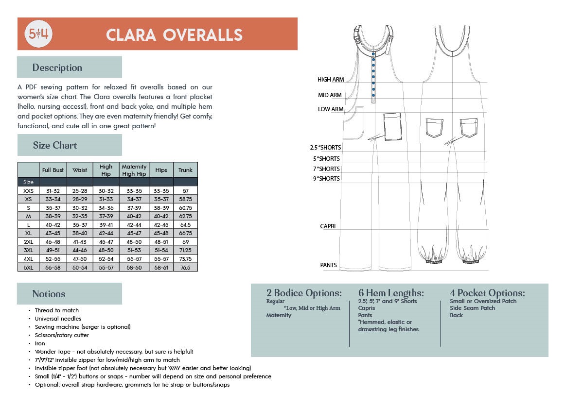 Specifikation: 5 out of 4 Patterns Clara Overalls Downloadable Pattern