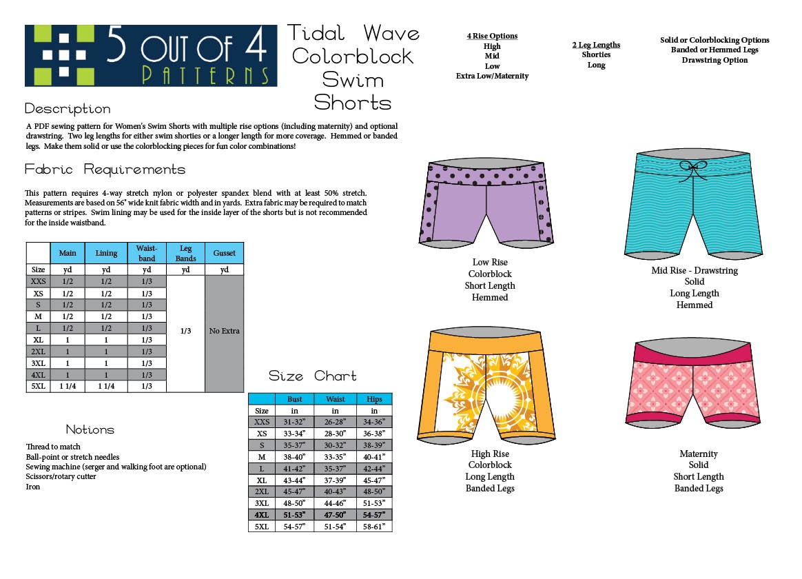 Specifikation: 5 out of 4 Patterns Tidal Wave Swim Shorts Downloadable Pattern