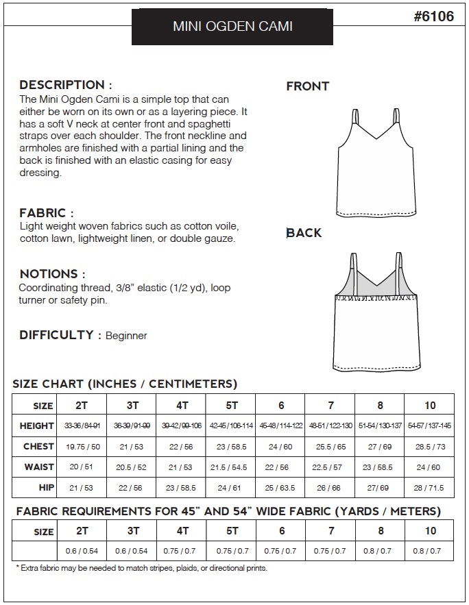 Especificaciones: True Bias Mini Ogden Cami Downloadable Pattern 6106