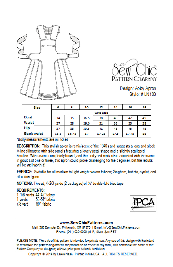🧵 Downloadable pattern: Sew Chic Abby Apron LN103. ✂️ Perfect for DIY sewing projects.
