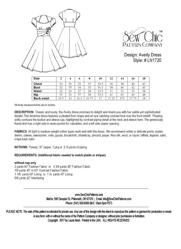 🧵 Downloadable pattern: Sew Chic Averly Dress LN1720. ✂️ Perfect for DIY sewing projects.