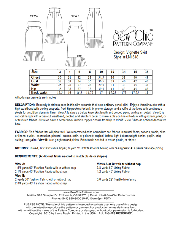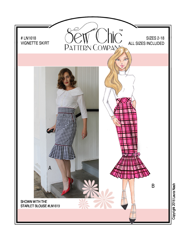 🧵 Downloadable pattern: Sew Chic Vignette Skirt LN1618. ✂️ Perfect for DIY sewing projects.