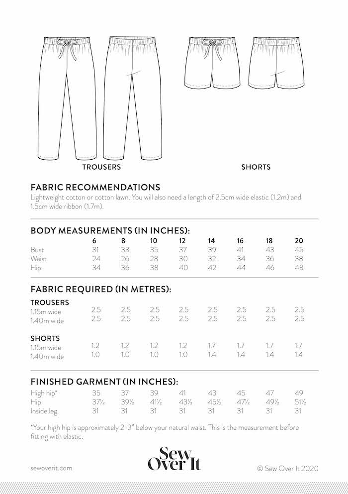 Spécification: Sew Over It Ultimate Pyjamas Downloadable Pattern
