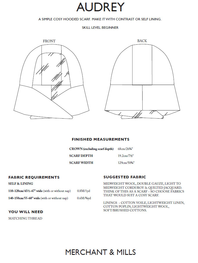 🧵 Downloadable pattern: Merchant & Mills Audrey Hood Downloadable Pattern. ✂️ Perfect for DIY sewing projects.