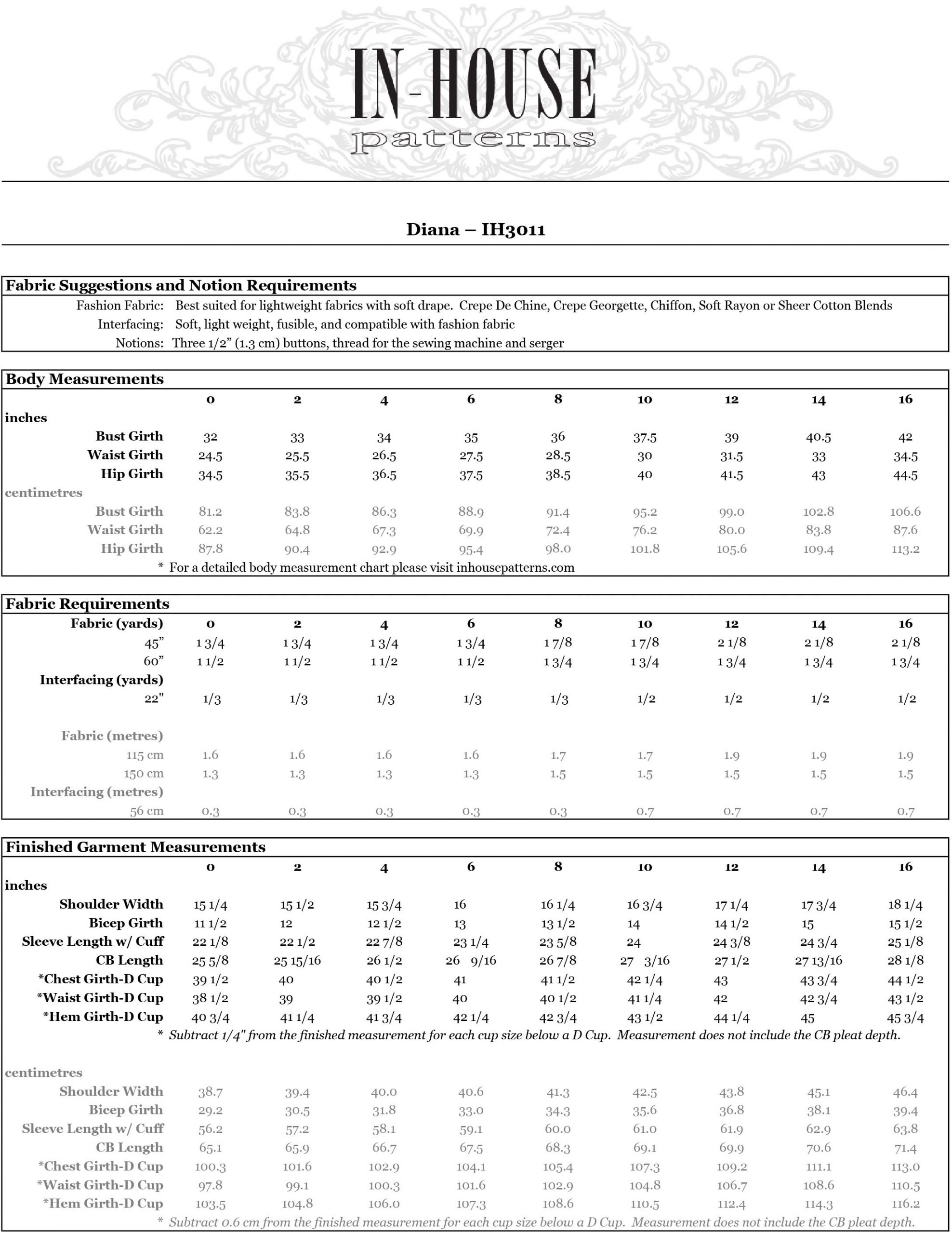 Specifiche: In-House Diana Downloadable Pattern 3011
