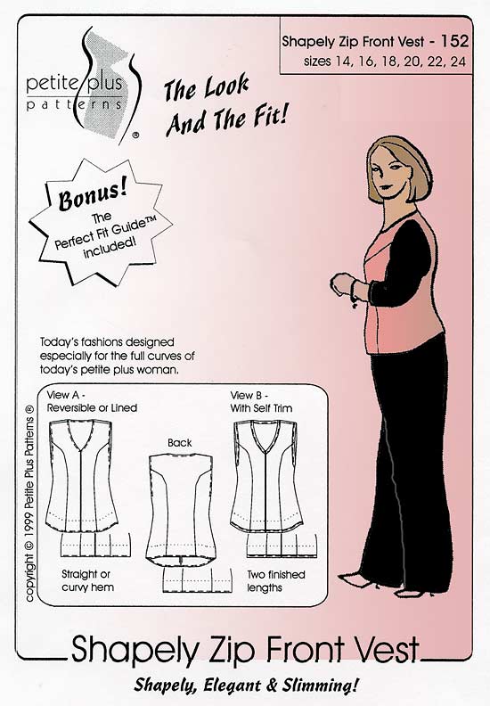 Petite Plus Patterns Shapely Zip Front Vest Downloadable Pattern 152