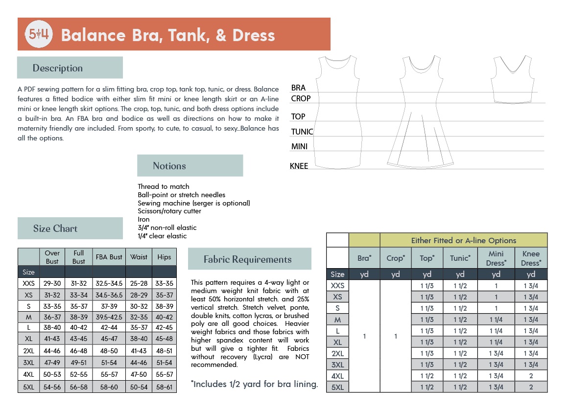 Specification: 5 out of 4 PatternsĀ Balance Bra, Tank, and Dress Downloadable Pattern