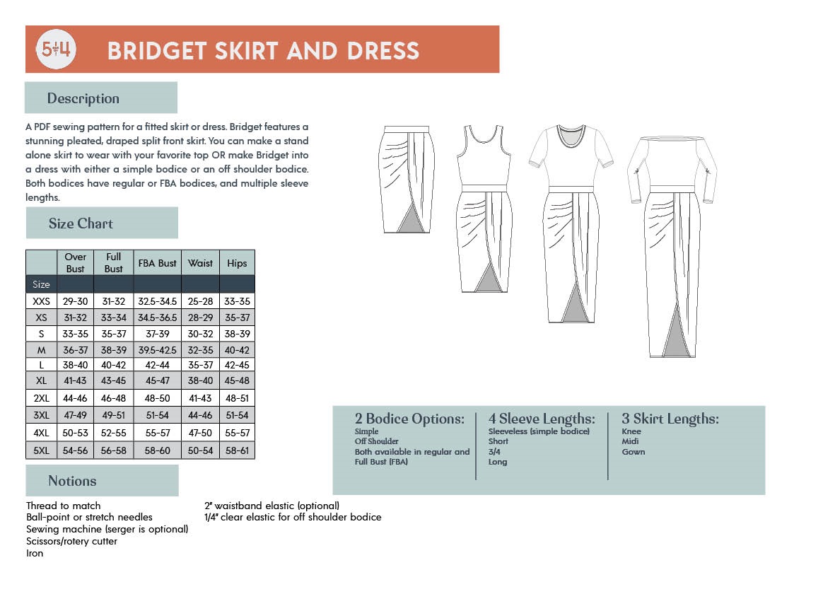 Specification: 5 out of 4 Patterns Bridget Skirt and Dress Downloadable Pattern