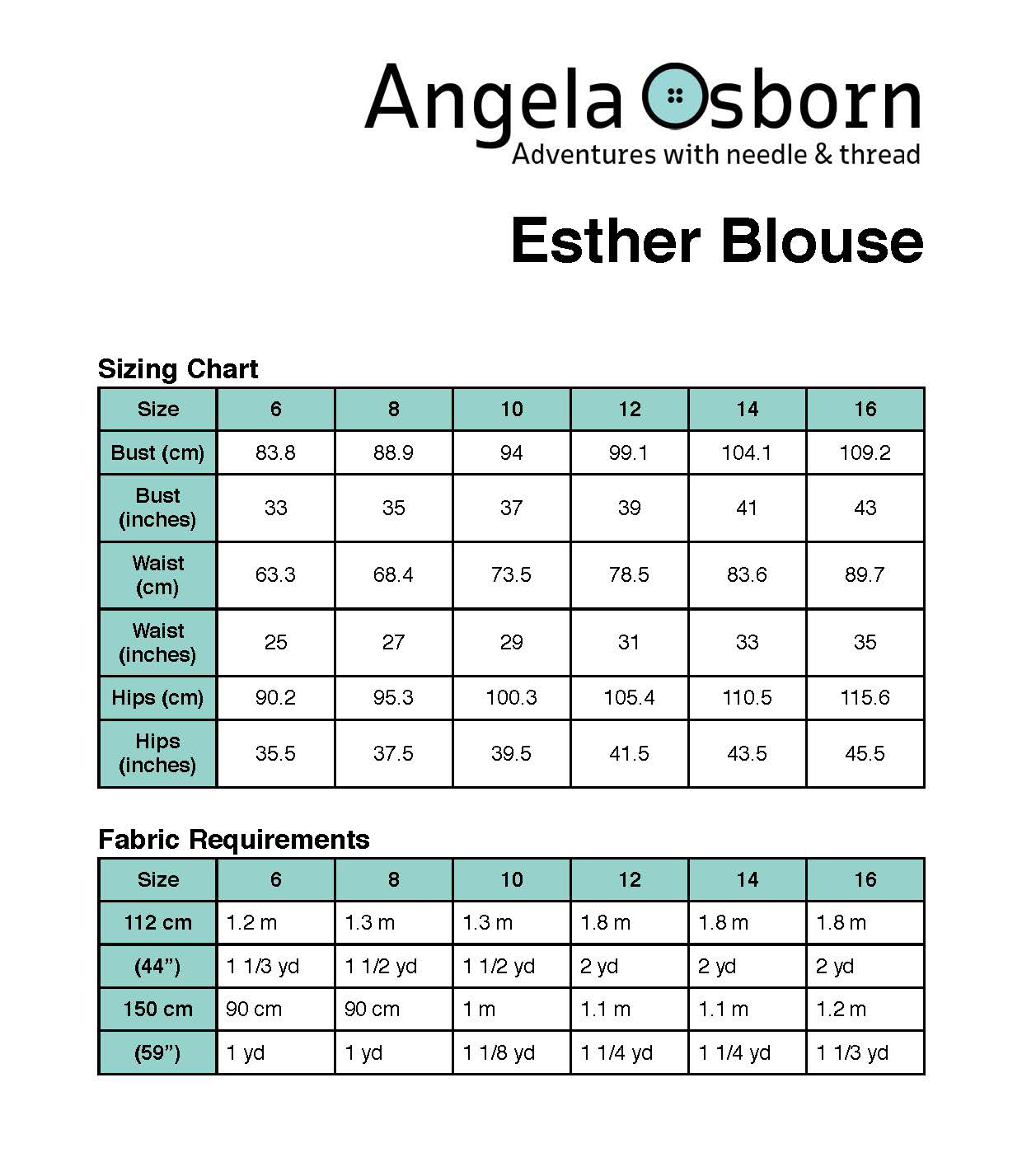 Specification: Angela Osborn Esther Blouse Downloadable Pattern SS10-11-102