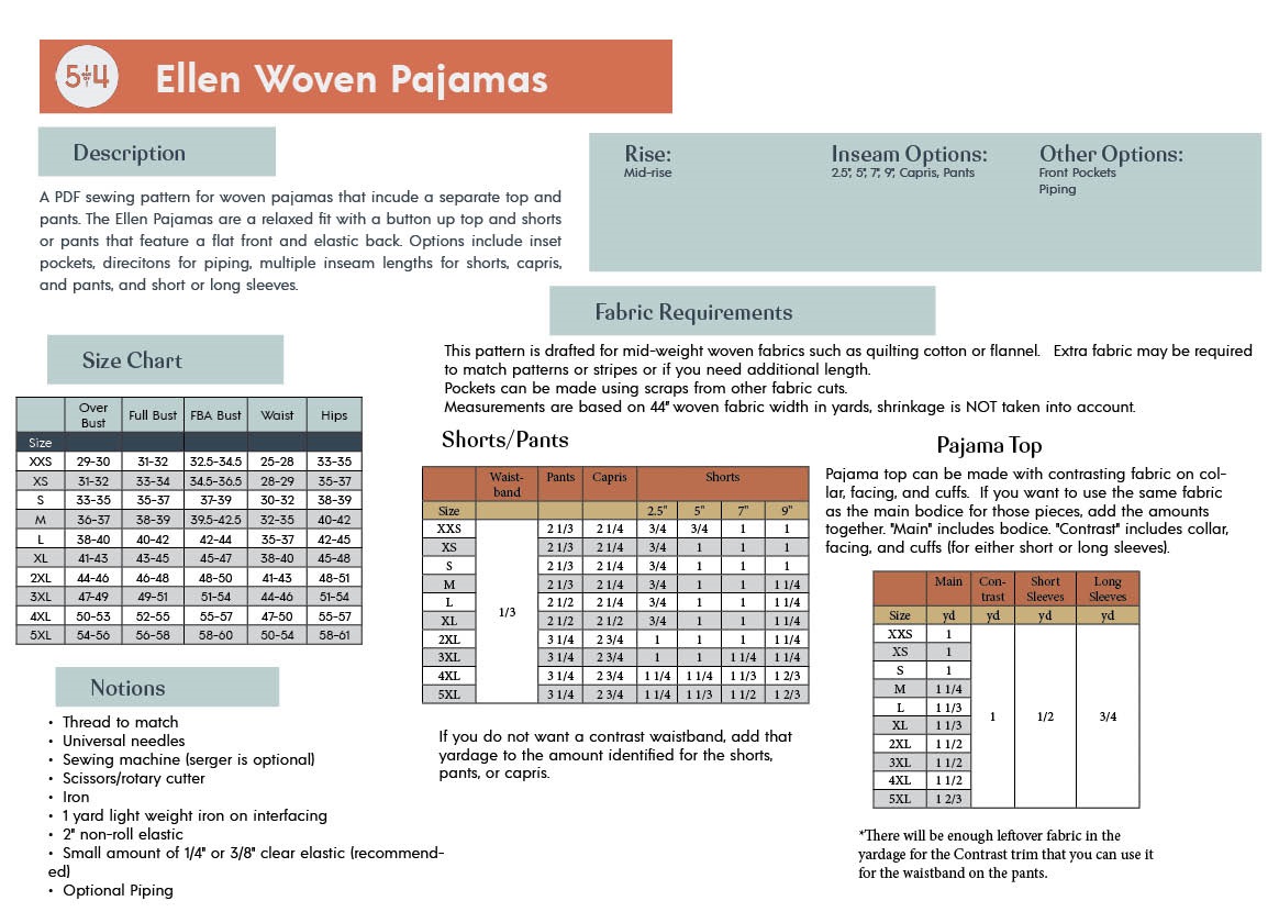 Especificação: 5 out of 4 Patterns Ellen Woven Pajamas Downloadable Pattern