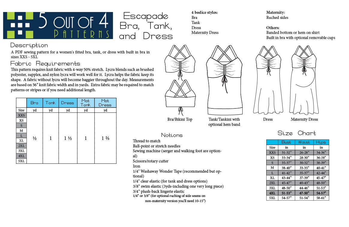 Especificação: 5 out of 4 Patterns Escapade Top and Dress Downloadable Pattern