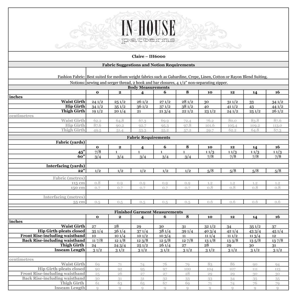 🧵 Downloadable pattern: In-House Claire Downloadable Pattern 6000. ✂️ Perfect for DIY sewing projects.