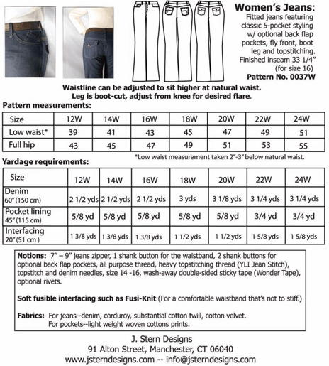 🧵 Downloadable pattern: J Stern Designs Women’s Jeans 0037W. ✂️ Perfect for DIY sewing projects.