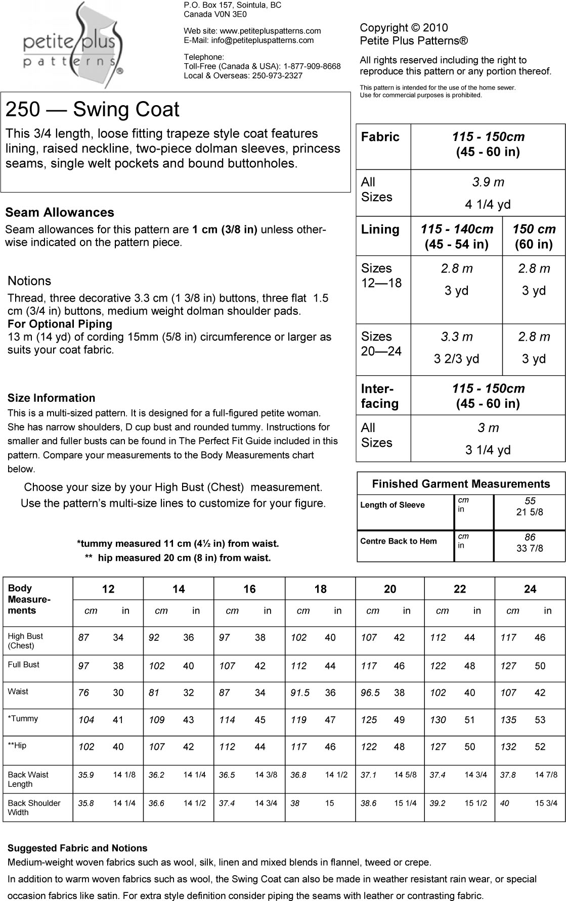 🧵 Downloadable pattern: Petite Plus Patterns Swing Coat 250. ✂️ Perfect for DIY sewing projects.